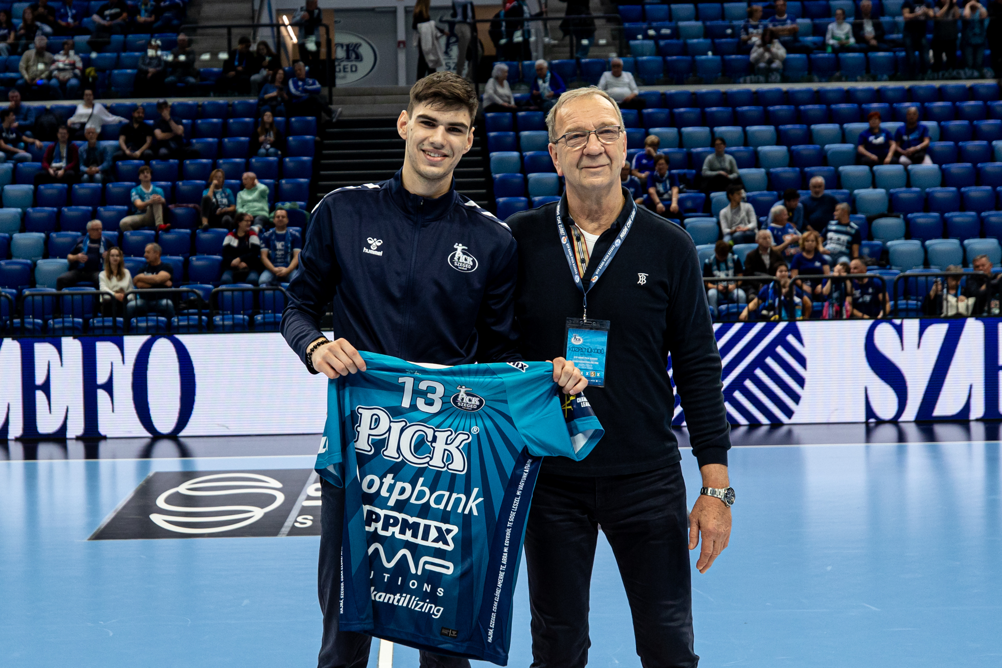 Micsoda pillanat volt! A Szigetszentmiklós elleni bajnoki mérkőzés előtt legendánk, Lele Ambrus adta át a mezt frissen szerződtetett irányítónknak, Fazekas Máténak. A múlt és a jövő megható találkozásának lehettünk a tanúi a PICK Arénában.