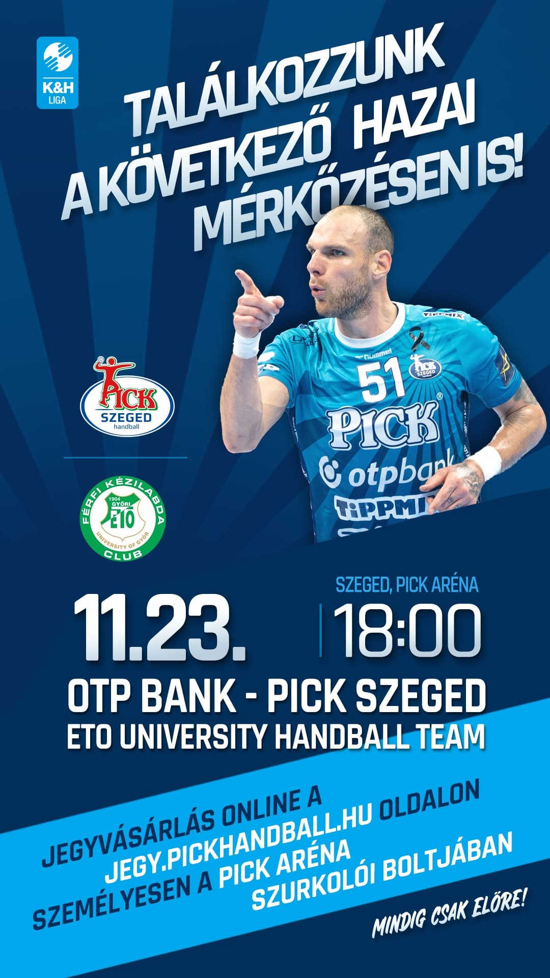 HC Eurofarm Pelister nov. 20. csütörtök Végeredmény: 35 20 Szeged PICK Aréna