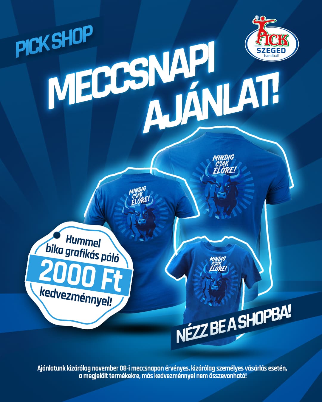 Csak ma, csak a helyszínen: vedd meg a legújabb bikás pólót 2.000 Ft kedvezménnyel az Arénában található Shop-ban!