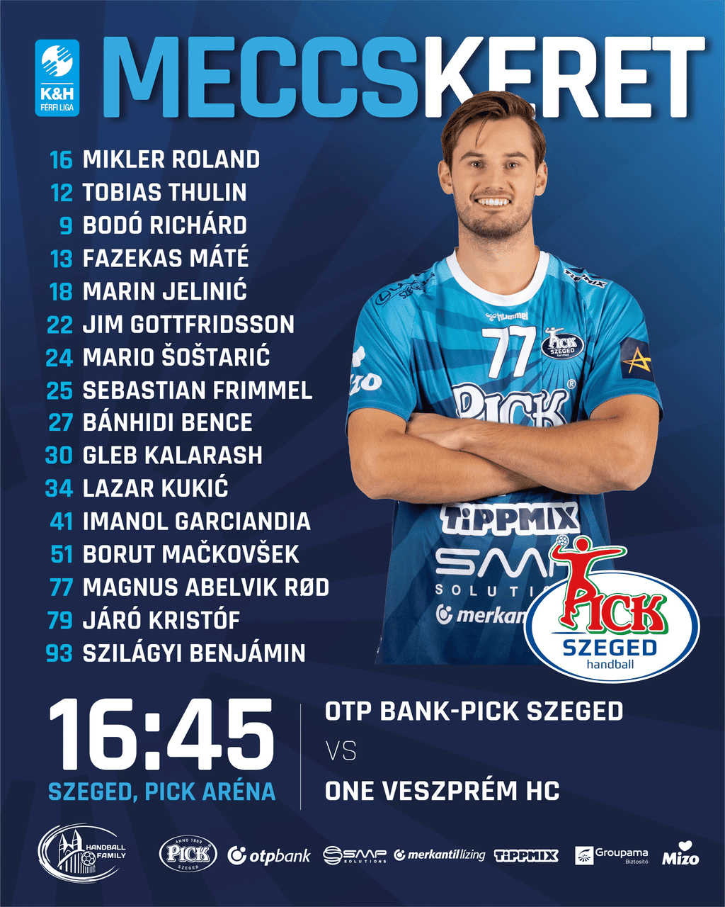 16.45-kor kezdődik a Szuperrangadó. Itt a meccskeretünk. Jó hír, hogy Magnus Abelvik visszatér, norvég légiósunk is pályára léphet.