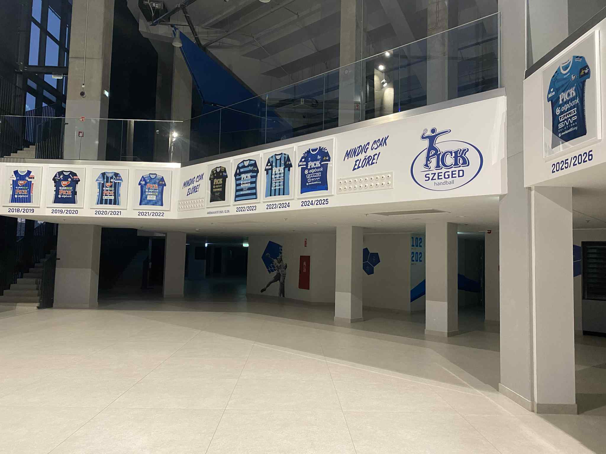 Újabb látványos résszel gazdagodott a PICK Aréna, amelyre méltán lehet büszke a #HandballFamily közössége. A szombati rangadóra elkészült egy állandó mezkiállítás a Szurkolói bolttal szemközti részen.